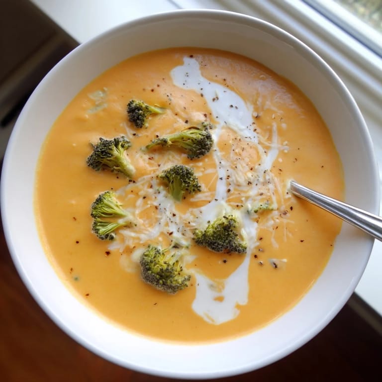 Last winter, my neighbor knocked on my door after her furnace broke down, and I invited her in for warmth and conversation. While waiting for the repair person, I quickly whipped up this broccoli cheddar soup. As we sat huddled at my kitchen table, steam rising from our bowls, she closed her eyes at the first spoonful and whispered, This feels like a hug in a bowl. The repair was finished, but she stayed for a second helping.