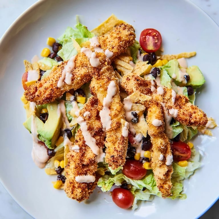Save The skillet was sizzling louder than I expected, and I remember thinking I might have added too much oil. But then the first batch of breadcrumb-coated chicken hit the pan, turning golden in seconds, and the smell of cumin and paprika filled the whole kitchen. My neighbor knocked on the door asking what I was making. That's when I knew this wasn't just another weeknight salad.