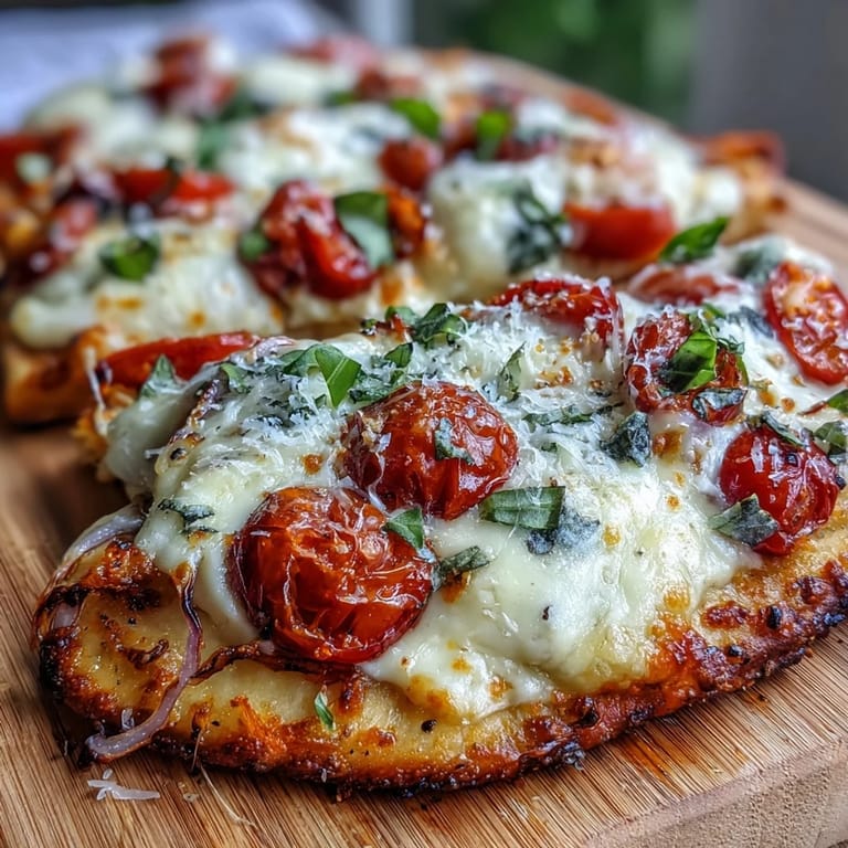 The beauty of this recipe is that it genuinely doesn't care what you pile on top, as long as you keep the proportions somewhat reasonable. I've made it with roasted mushrooms, sliced bell peppers, crumbled sausage, and even leftovers from other meals. The naan base is sturdy enough to handle generous toppings, and the short cooking time means everything stays relatively fresh rather than turning into a dried-out mess. Just remember that anything wet (like fresh tomatoes beyond the ones specified) might release moisture that softens the crust, so lean toward heartier vegetables or pre-cooked proteins.