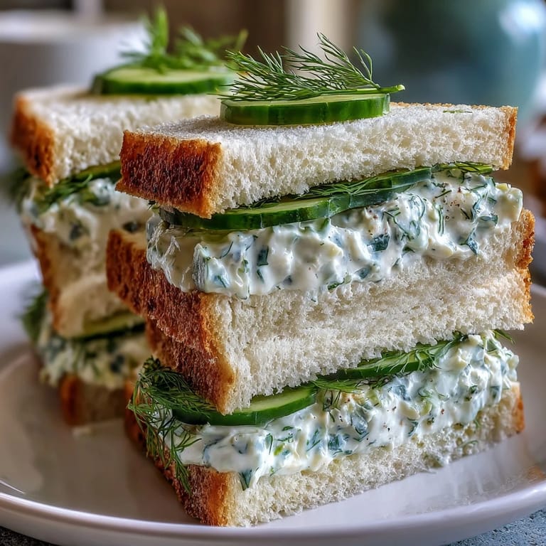 - Cut sandwiches diagonally or into fingers for traditional tea sandwiches. Garnish with thin cucumber slices and dill sprigs if desired. Serve chilled.