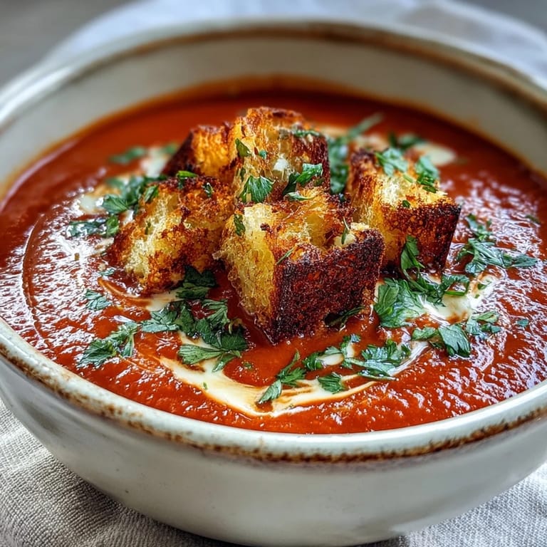 - Ladle soup into bowls and crown each one with crispy croutons, fresh herbs, and an optional swirl of extra harissa or cream. The contrast of textures—silky soup, crispy bread, the herbal pop of fresh parsley—is what makes this dish feel special.