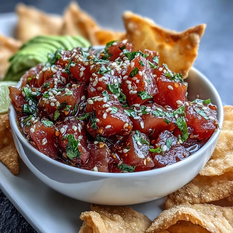 Save My friend Marcus showed up to a dinner party with this spicy tuna tartare, and I watched it disappear in minutes while people hovered around his platter asking for the recipe. He wouldn't give it up that night, so I had to reverse-engineer it from memory the next day—turns out the secret was just quality tuna and a perfectly balanced dressing that hit all the right notes at once. Now when I make it, that same magic happens every time, and I've learned it's one of those dishes that proves you don't need complicated technique, just good ingredients and confidence.