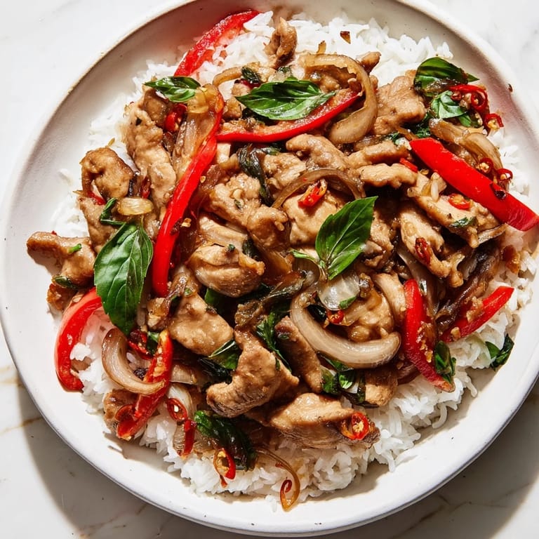 This recipe is a canvas. Some people top theirs with a crispy fried egg for richness; others add cashews for crunch or swap the chicken for shrimp or even firm tofu. The sauce stays the same, the basil stays essential, but everything else is flexible. I once made this with mushrooms instead of bell pepper on a night when I had no other vegetables, and it turned into something earthier and unexpectedly wonderful. Trust your instincts and your pantry.